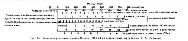 Для этого предлагаем взять извеснава рускава вчонава Рыбакова Б.А. и его известную книгу "Русские земли по карте Идриси 1154 года" Краткие сообщения Института истории материальной культуры. 1954. Вып. 43: скачать можно здесь: http://www.mediafire.com/view/?u0fe5404k5uu0wg