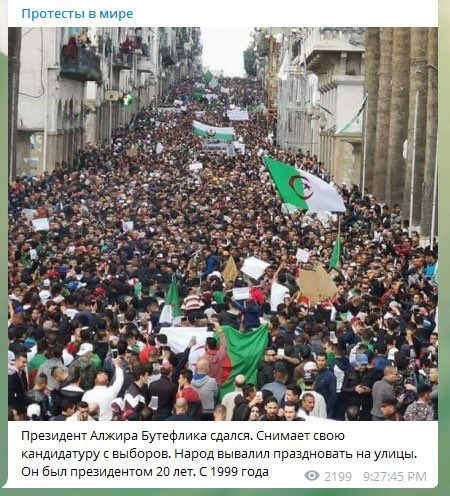 Кацапы, ну когда же? Ведь даже Алжир показывает, что это можно, менять президентов по воле народа.