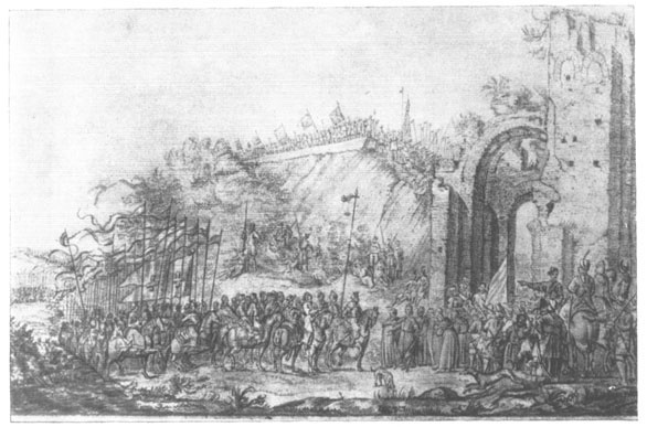 10.07.1651 получив сообщение о разгроме Хмельницкого под Берестечком Януш Радзивилл двумя колоннами по обеим берегам Днепра пересек границу Украины.В августе литвины сломив сопротивление малочисленного козацкого гарнизона вошли в Киев.Козацкие отряды отступили в Триполье.Четвертого августа Януш Радзивилл через руины Золотых ворот вьехал в Киев.По официальным источникам город разграблен не был, но 16.08.на Подоле начался пожар в результате которого сгорел практически весь город. Выгорел Подол,рынок,ратуша вместе с архивом и документами на право собственности и привилегии,городской арсенал,значительная часть польских и униатских церквей,больше двух тысяч домов.