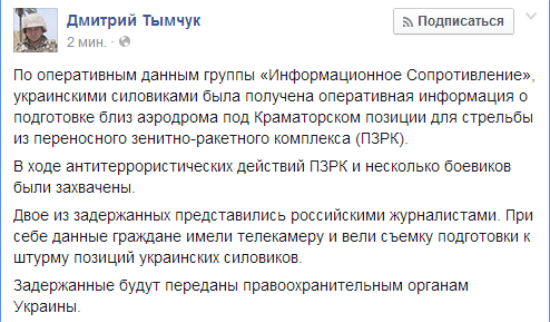 Исходя из вышеизложенного, у украинской власти совсем развязаны руки. Генеральная прокуратура уже признала сепаратистов террористами и нынче АТО может проходить в открытом режиме, ведь москвич открыто сказал, что он – политтехнолог и что имеет отношение к операции по аннексии Крыма.