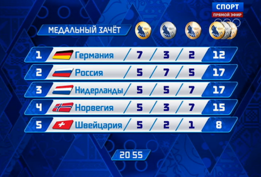 Date: 2014-02-17 05:01 pm (UTC)У России пятое золото и первое место в общем зачете!