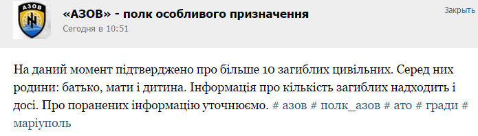 Но весь город знает что в течении недели стреляли с Восточного, Сартаны, Талаковки и тд, по Новоазовскому району, местным было пох*й и не важно что там тоже это все приземляется, люди живут в подвалах, никто не вышел и не спросил, зачем вы стреляете с блокпостов, если по вам не стреляют... И теперь удивляются ? Это обычная расплата за эгоизм, и за то что свою шкуру ценят дороже, сотен других...